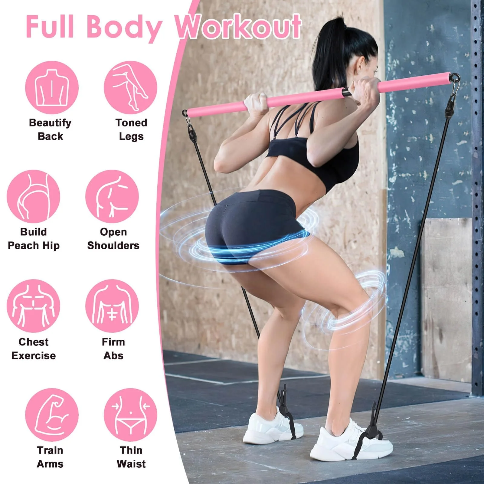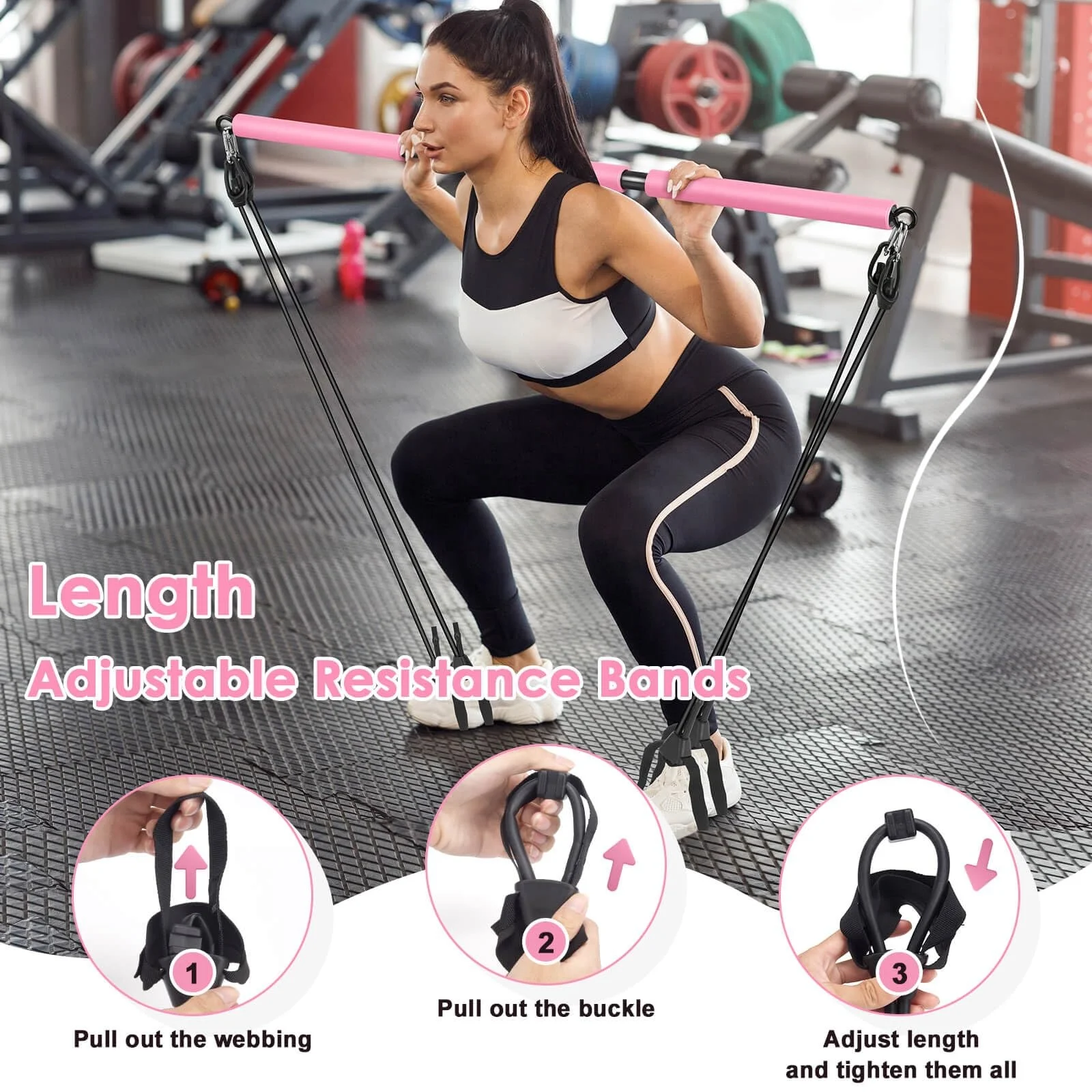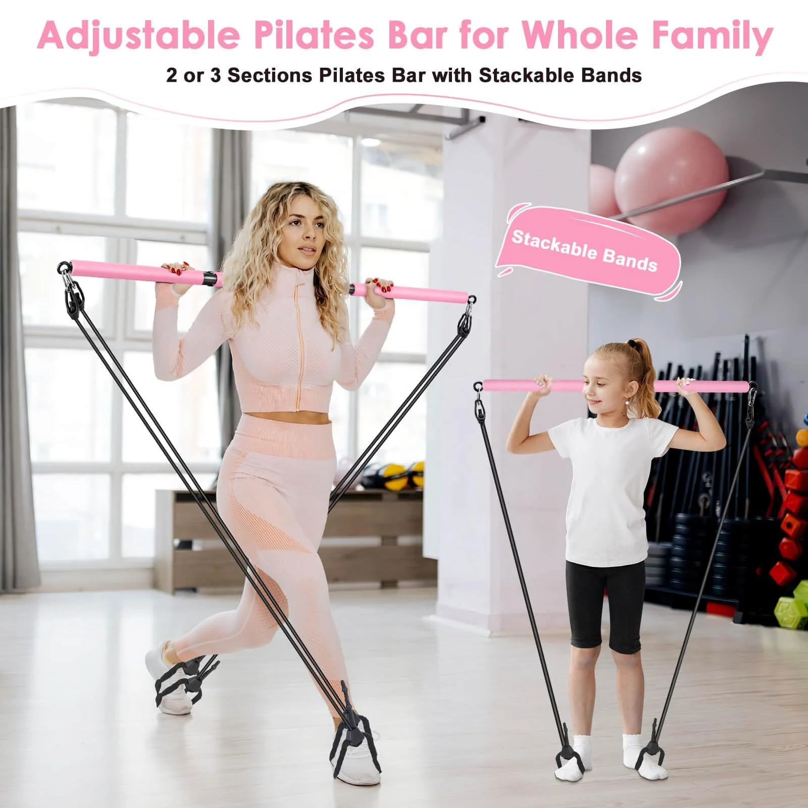 MR Pilates Bar Kit with ab wheel, Knee Mat,Adjustable 3-Section Pilates Bar with 4 Resistance Bands for Home Gym |