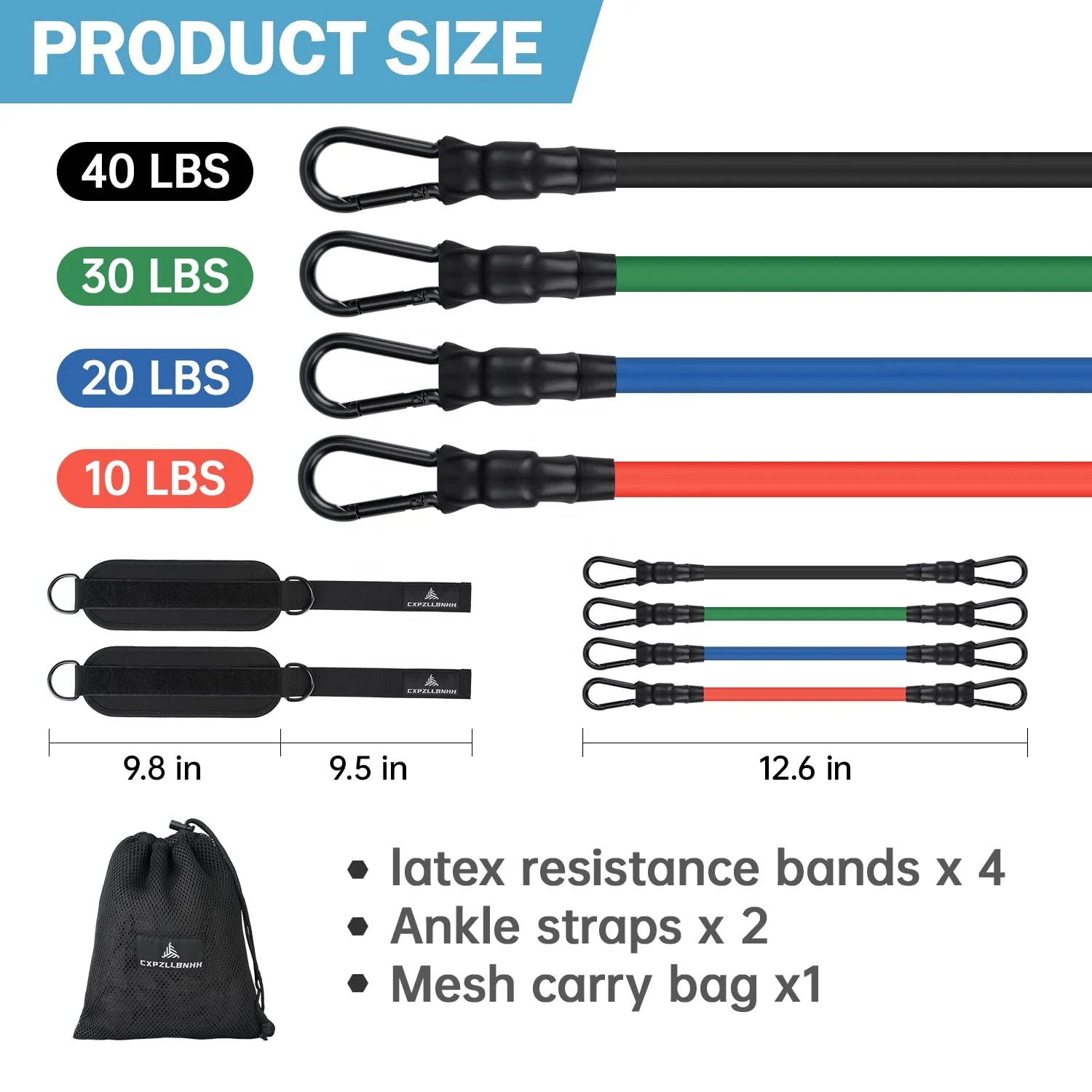Latex resistance bands x 4 Ankle straps x 2