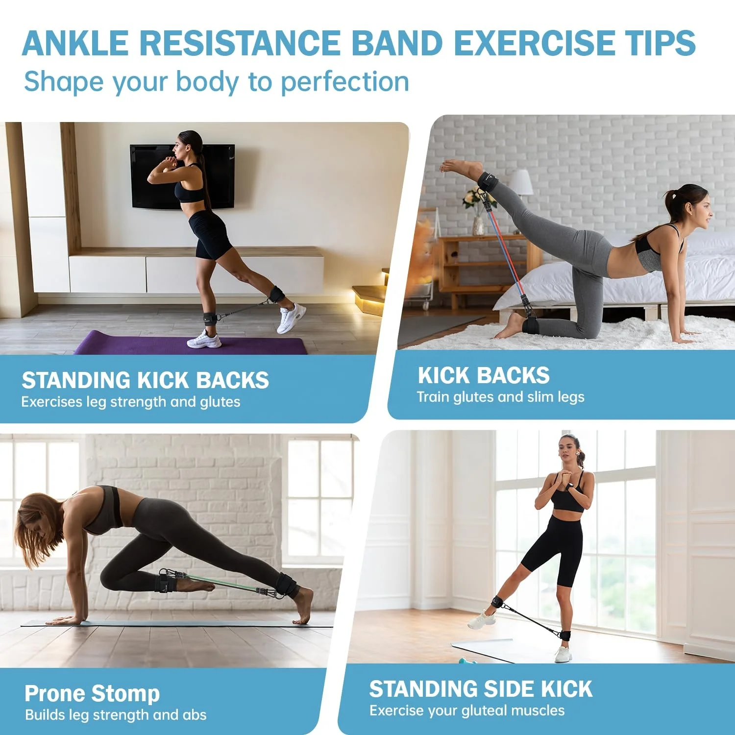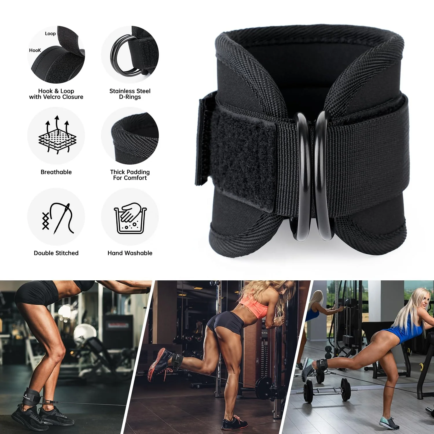 MR Ankle Resistance Bands With Cuffs Glutes Workout Home & Gym Workout Equipment Legs Resistance Bands for Kickbacks |